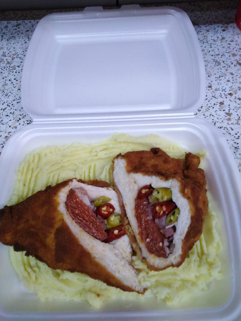 Baconnel, szalámival, gyufapaprikával töltött csirkemell rántva 02 dec A kosárba helyezés után köreteinkből választhatsz kedvedre valót Baconbe tekert csirkemell Rántott gomba